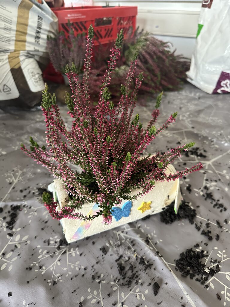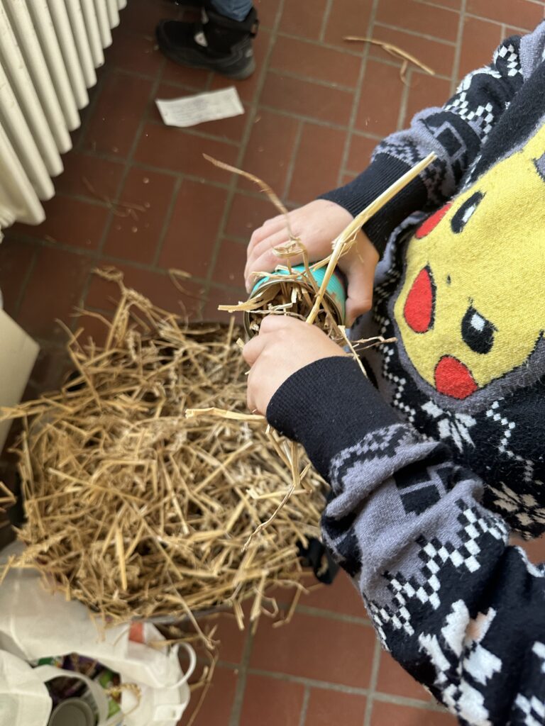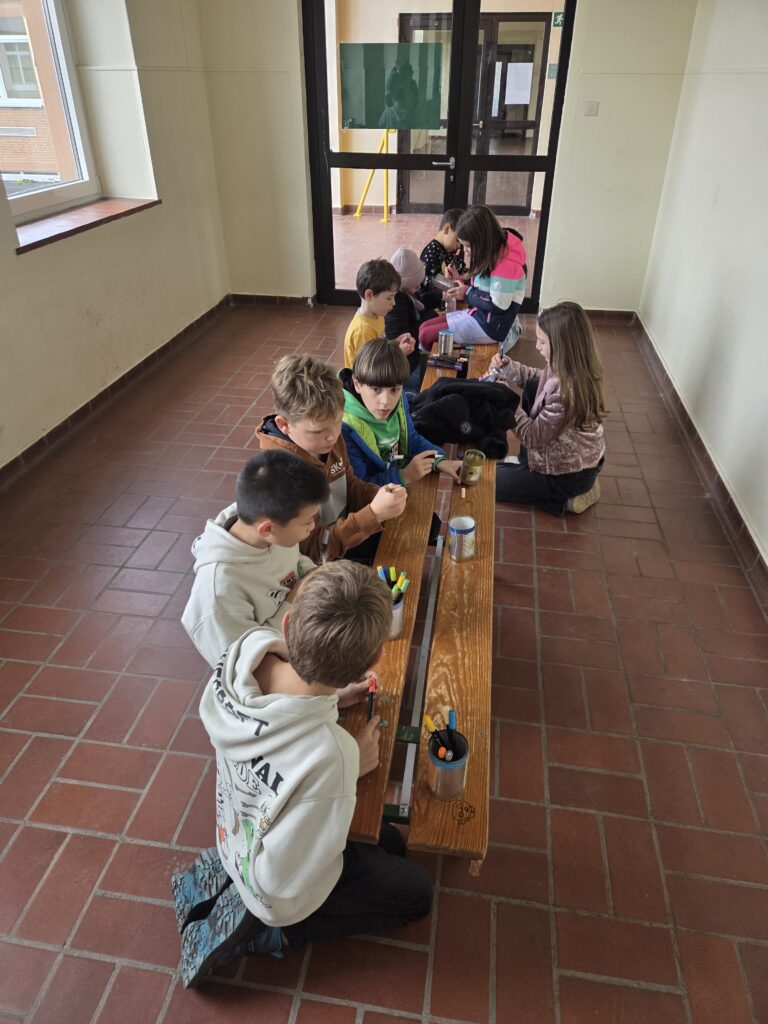 Mit großem Eifer wurden Duftsäckchen gefüllt, Unterschlüpfe für Ohrenkneifer gebaut und Milchpappen bunt verziert und bepflanzt. Dabei entstanden kleine Kunstwerke, die nicht nur schön aussahen, sondern auch einen praktischen Nutzen hatten. Schnell war die anfängliche Aufregung bei den Neunt- und Zehntklässler*innen verflogen, und man spürte, wie viel Freude es ihnen bereitete, ihr Wissen weiterzugeben. Die Kinder der vierten Klassen wiederum waren begeistert von den vielfältigen Entdeckungen, die sie machen konnten.