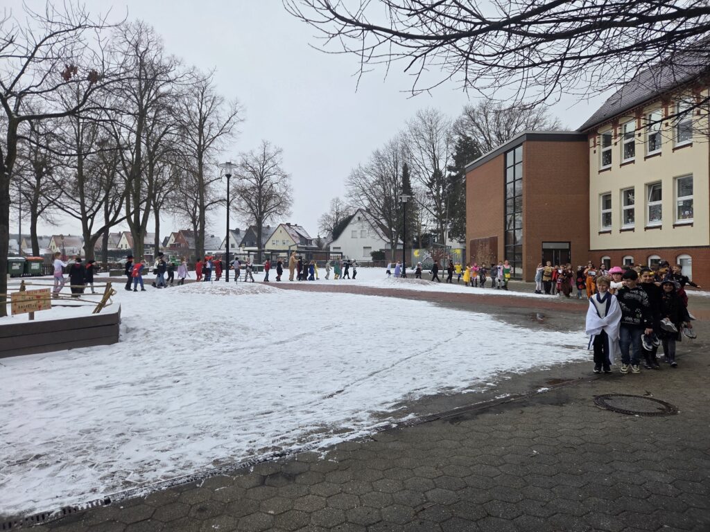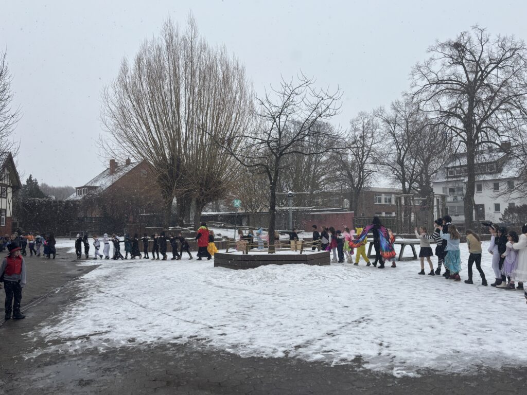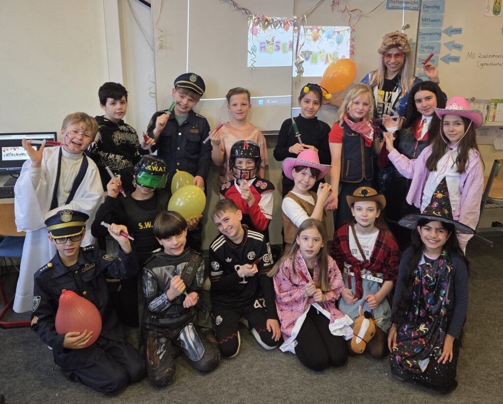 So ähnlich, wie die Schülerin es beschrieben hat, lief es wohl in allen Klassen unserer Grundschule am Rosenmontag ab. Neben leckerem Essen wurden Spiele gespielt und ordentlich gefeiert, so wie es sich für Fasching gehört. Alle Jahrgänge konnten eine Stunde in der Turnhalle ausgelassen spielen und tanzen. In einer Kostümshow hatten die Kinder die Gelegenheit, ihre tollen Kostüme zu präsentieren. Es war ein gelungener Tag mit ganz viel Spaß.