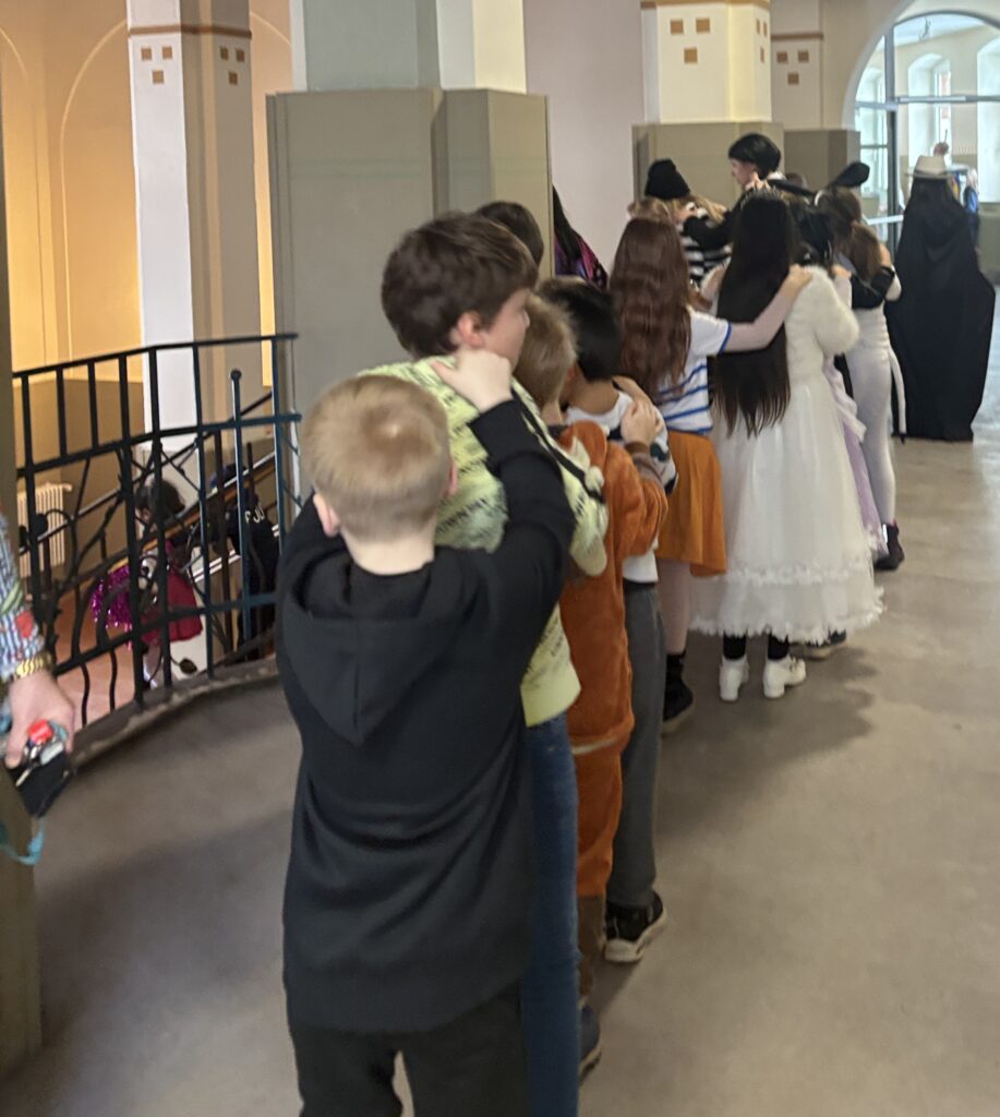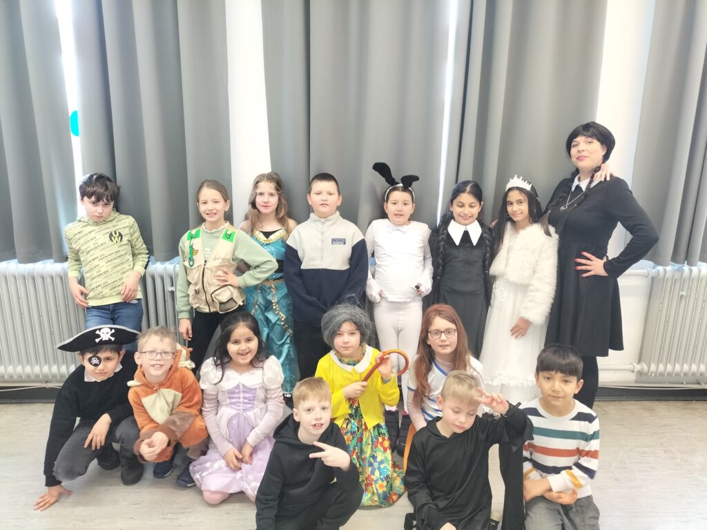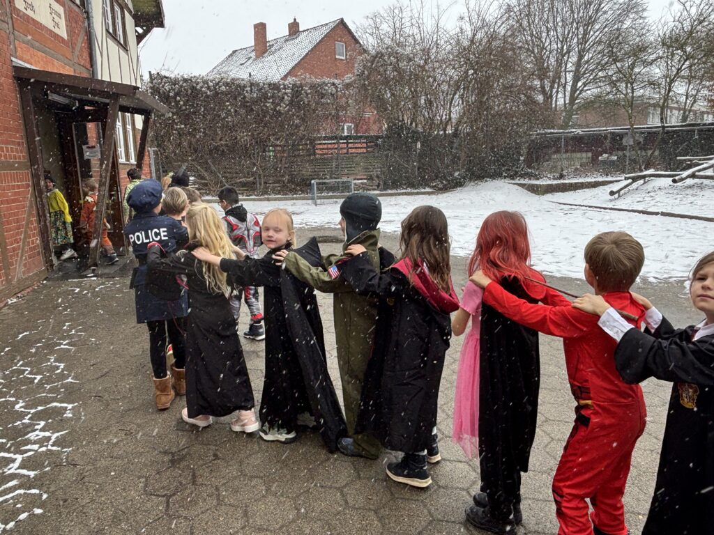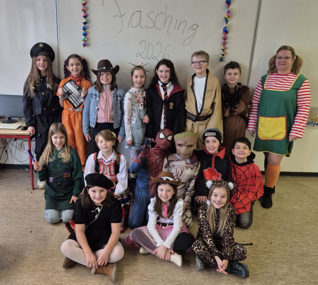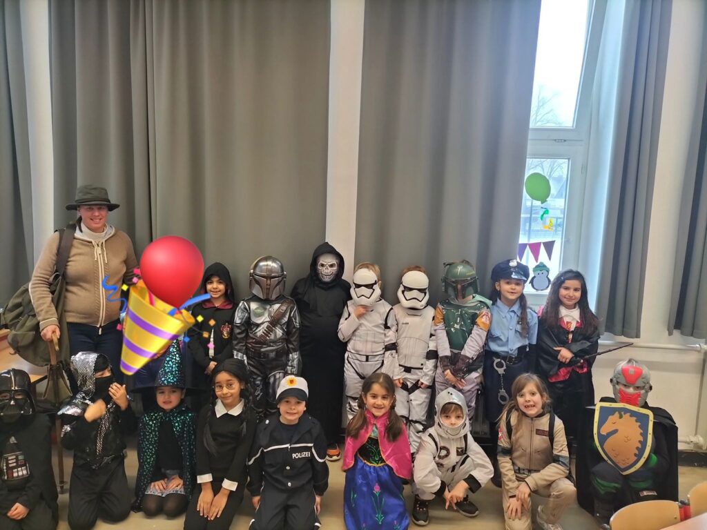 Als ich am Montag in die Schule gekommen bin, waren alle richtig cool verkleidet. Unser Klassenlehrer war als Lidltüte verkleidet und das war richtig cool und lustig. In der dritten Stunde hat uns eine Lehrerin mit einer Polonaise von den dritten und vierten Klassen abgeholt. Dann sind wir mit der Polonaise in die Turnhalle gegangen. In der Turnhalle haben wir Party gemacht. Das war richtig cool. Es gab richtig tolle Kostümen: Fußballer, Ninjas, Schmetterlinge und noch viele coole Kostüme mehr.